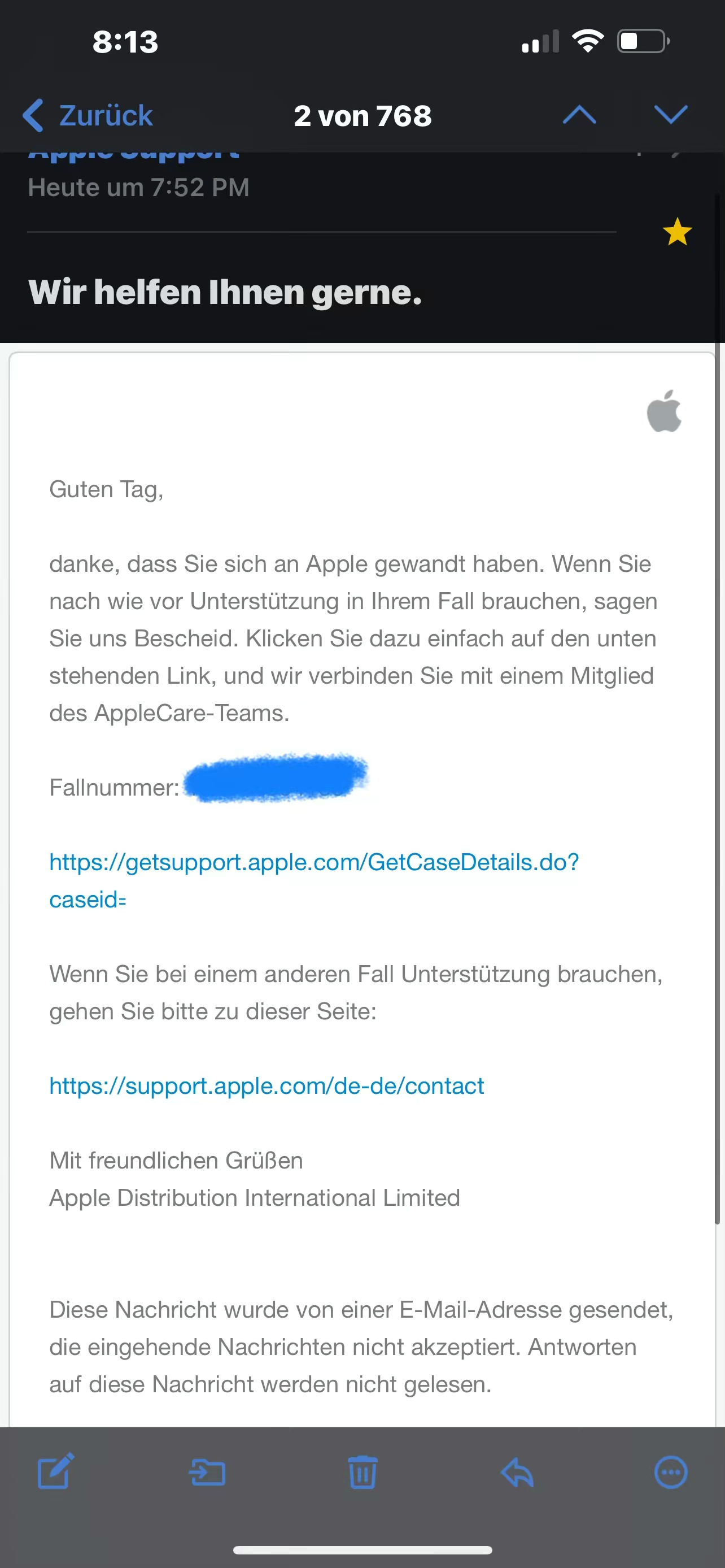 kann ich ihn dann mit dieser fallnummer wieder erreichen oder wie ist das ?