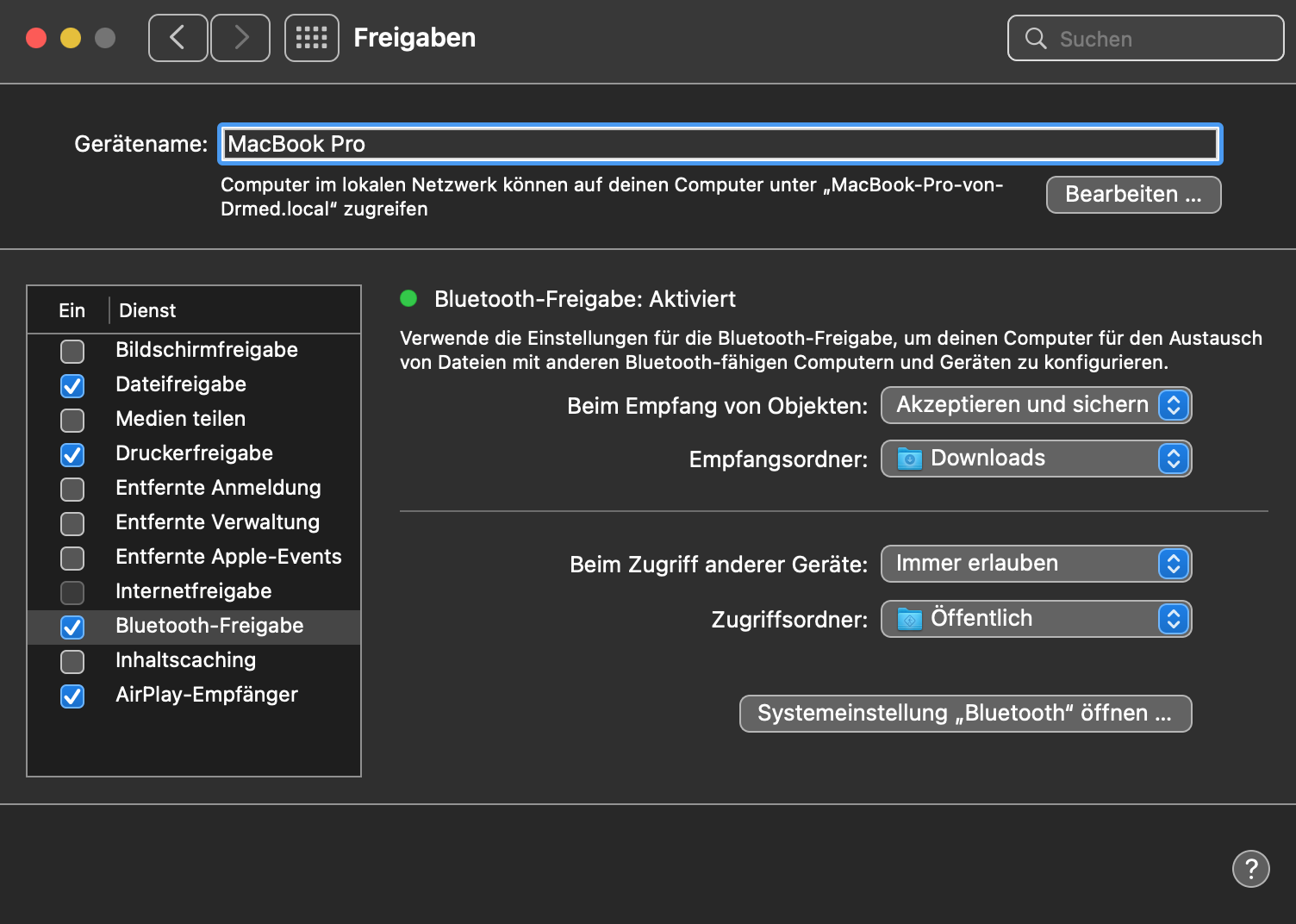 wenn du über --> --> Systemeinstellungen --> Freigaben