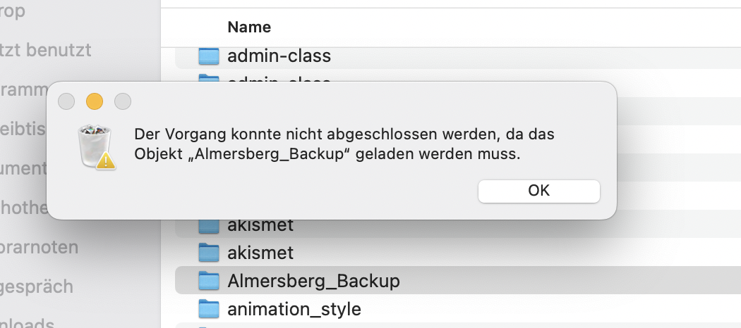 Wenn ich von dort Ordner oder Dateien löschen möchte, erscheint folgende Fehlermeldung: