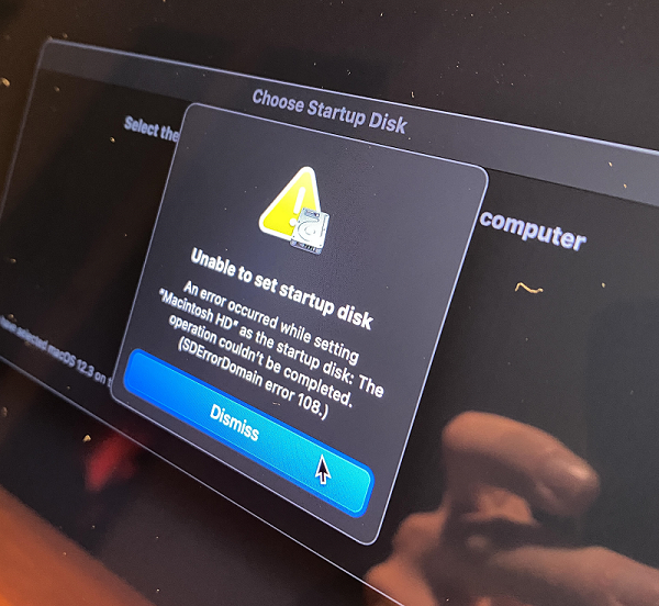 startup disk: The operation couldn’t be completed. (SDErrorDomain error 108).