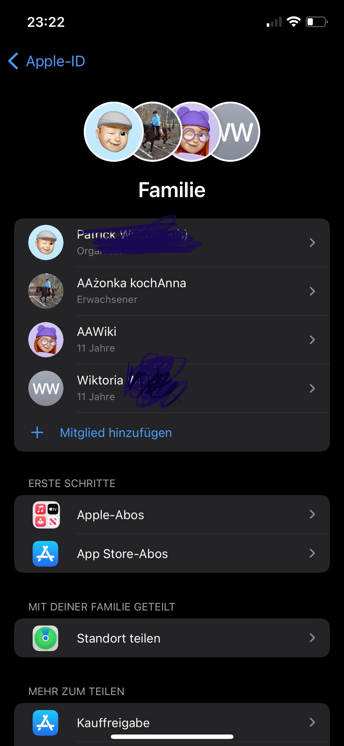 Wie kann man ein Familienmitglied wieder entfernen aus der Familienfreigabe??
