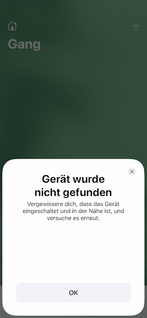 Nach x Versuche geht es nicht. Die folgenden Meldungen erscheinen auf dem iPhone in der App Home: