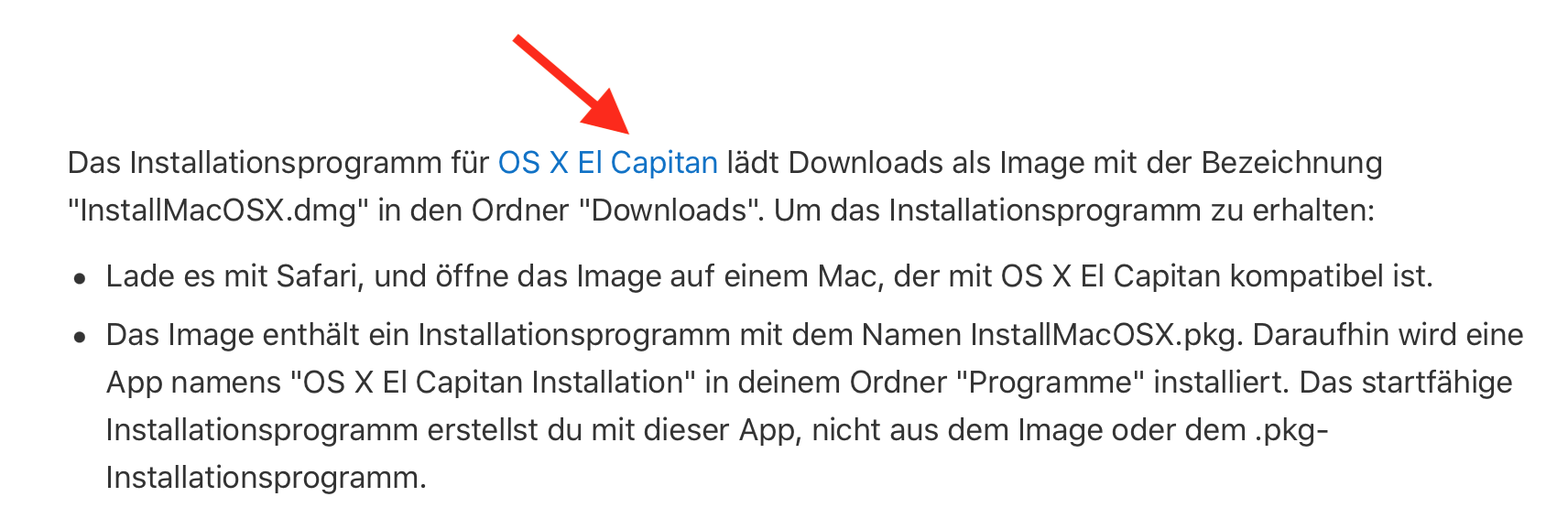 der Knackpunkt ist der El Capitan-Installer, den du von der nachfolgenden Seite des Apple Support herunterladen können solltest