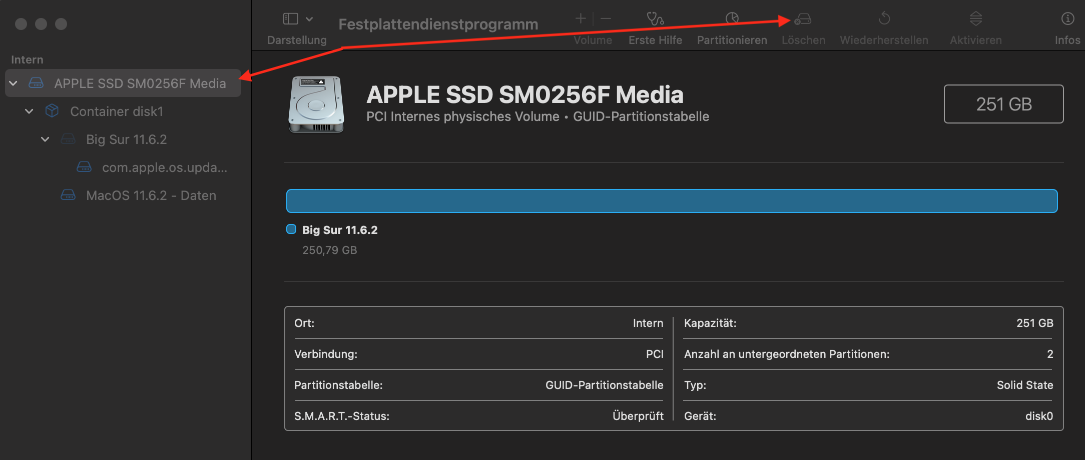 FPDP aufrufen und die SSD erneut löschen (Extended journaled, GUID-Partitionstabelle), FPDP beenden und
