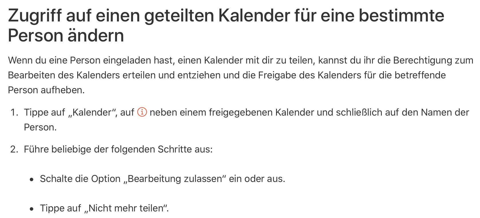 Kann ein Mitglied wo die Familienfreigabe noch aktiv ist aber das Paar schon getrennt ist auf den Kalender des Partners zugreifen?