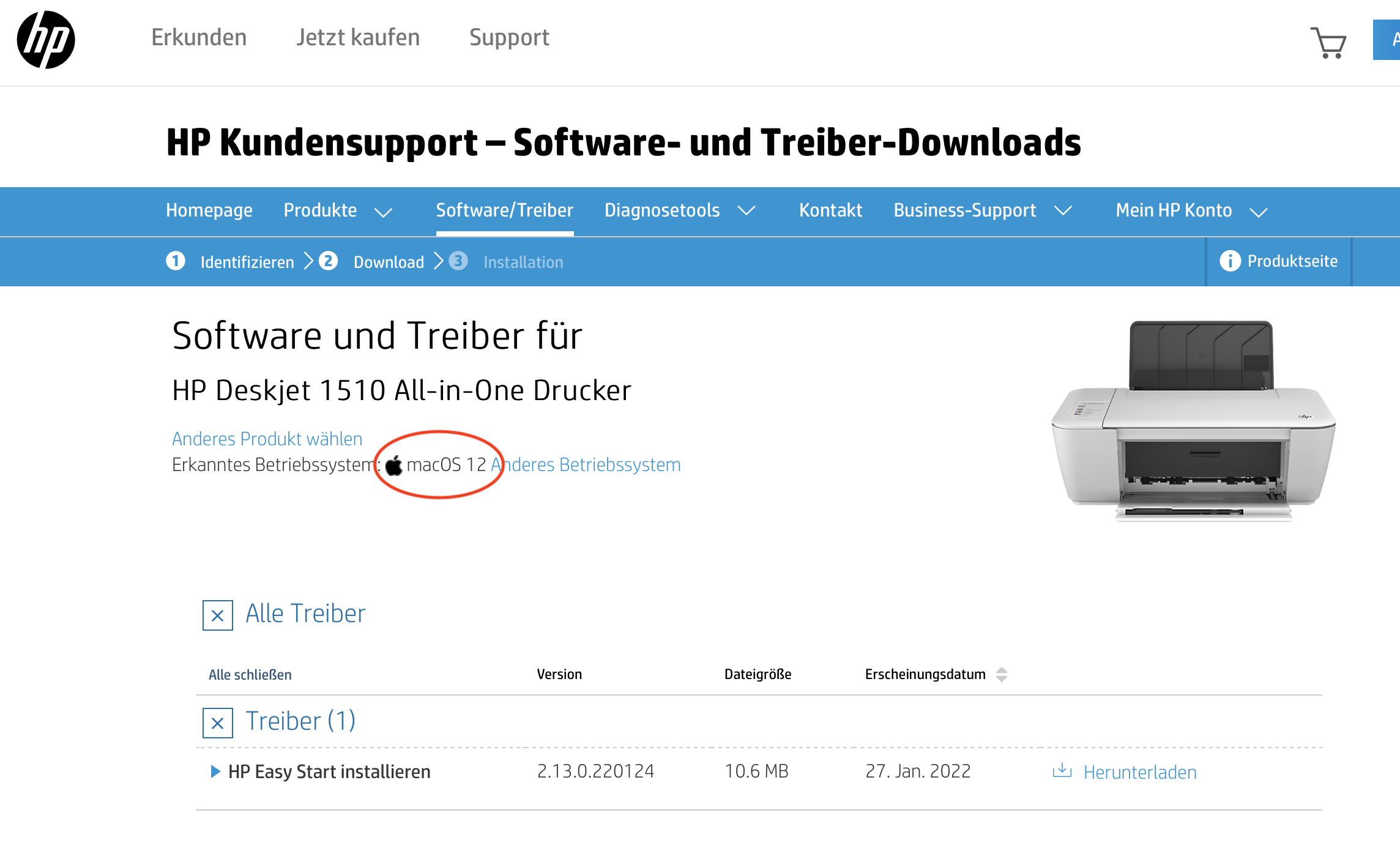 Ich habe einen neuen iMac mit Monteray, .Kann es sein, dass für HP das zu neu ist?