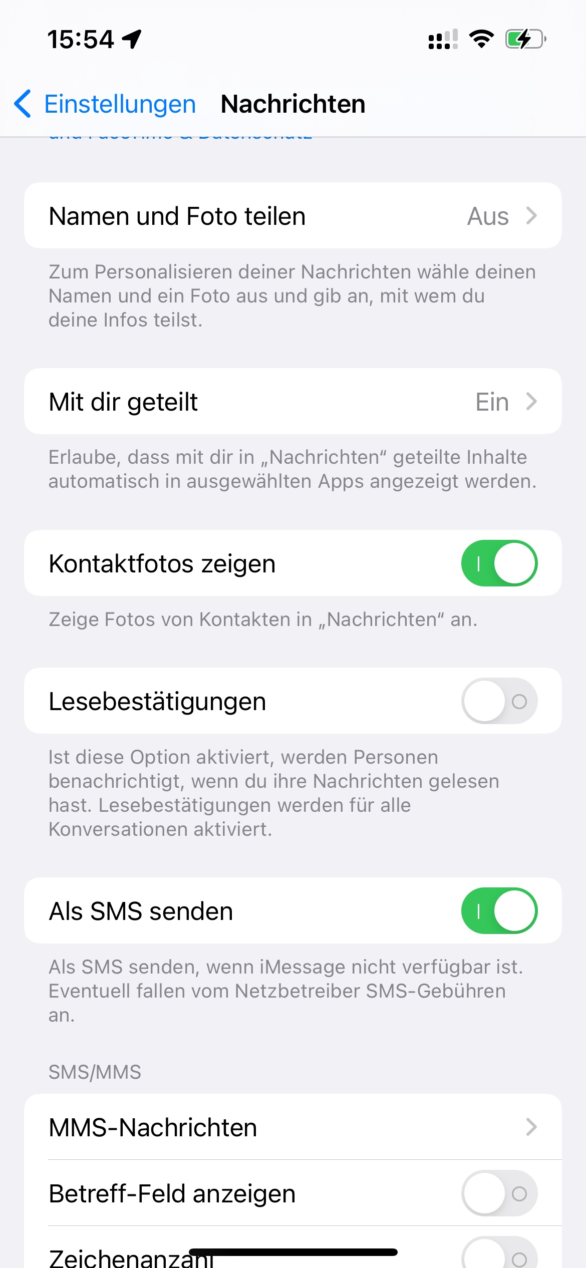 SMS Weiterleitung funktioniert nicht mehr, iOS 15.4 / macOS 11.6.5