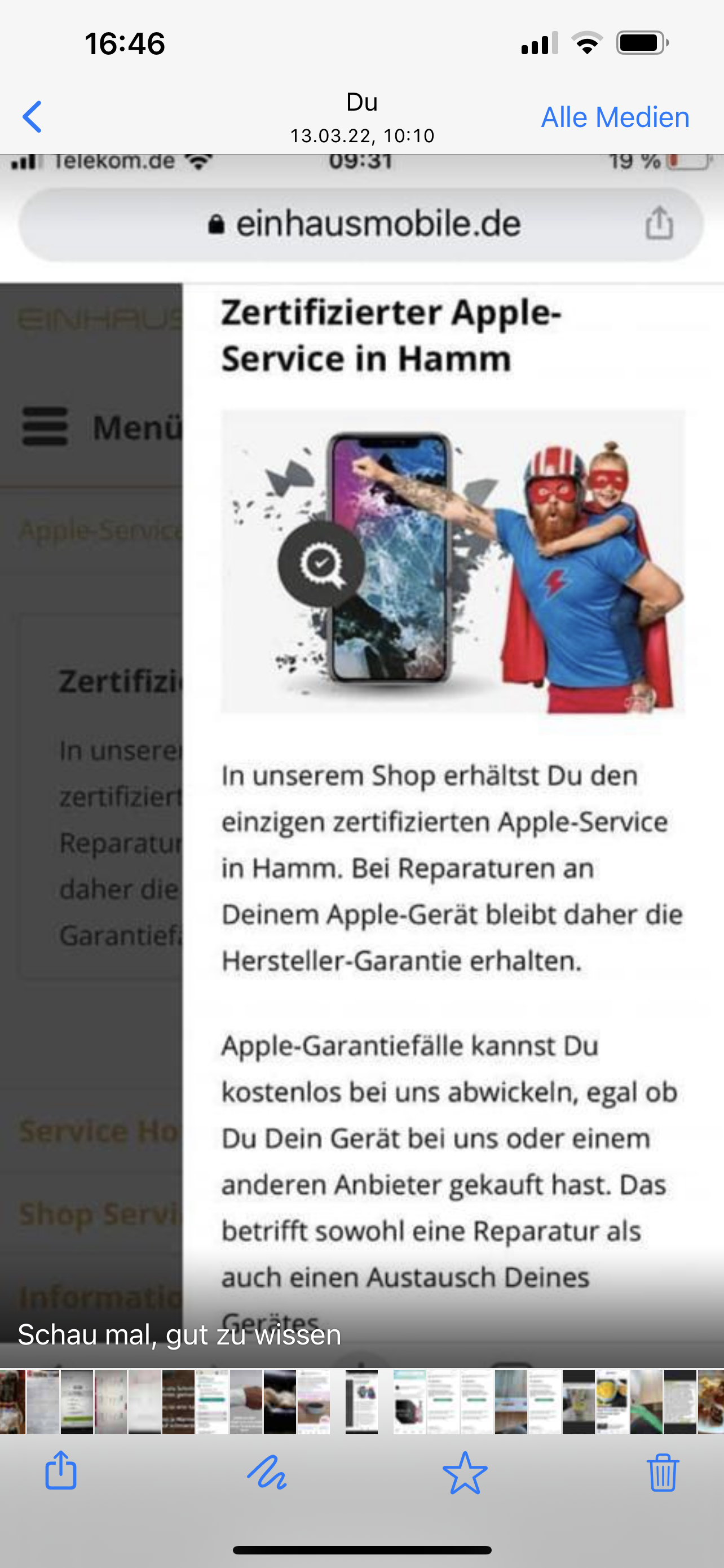 Hallo, bei uns in Hamm wirbt Einhausmobile damit, der einzige Apple autorisierte Reparaturdienst in Hamm zu sein. Aber als ich nachfragte wegen Accutausch, ich habe AppleCare Plus meinte er das geht nur in der Genius Bar. Als ich mit Apple Support gesprochen habe sagte die, es geht in jeden autorisierten Apple Shop und der nächste wäre in Dortmund! Kann in Hamm jemand einfach damit werben Apple autorisierter Dienst zu sein oder es wirklich zu sein?