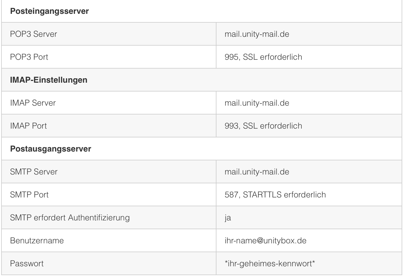 wie geht Unity Media account in Apple mail einstellen
