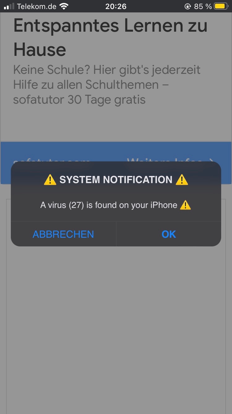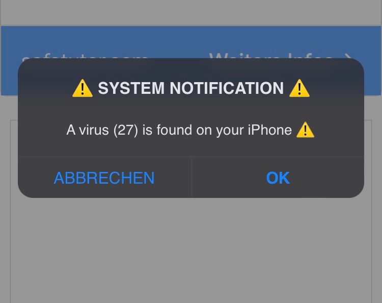 Schadsoftware? oder ein Abo? aber kein Virus! Dazu ist das ios zu sicher. Aber bitte nicht ausprobieren! Cool bleiben - und solche Seiten sofort schließen. Und zwischendurch mal das iphone komplett aus- und wieder einschalten. Empfohlen wird 1x die Woche. Oder: in einstellungen - Safari - Verlauf und Websitedaten löschen ausführen. Das beseitigt cookies aus dem Cache. Manchmal müssen dann für Webseiten Passworte neu eingegeben werden - aber das ist es wert. Viele Grüsse