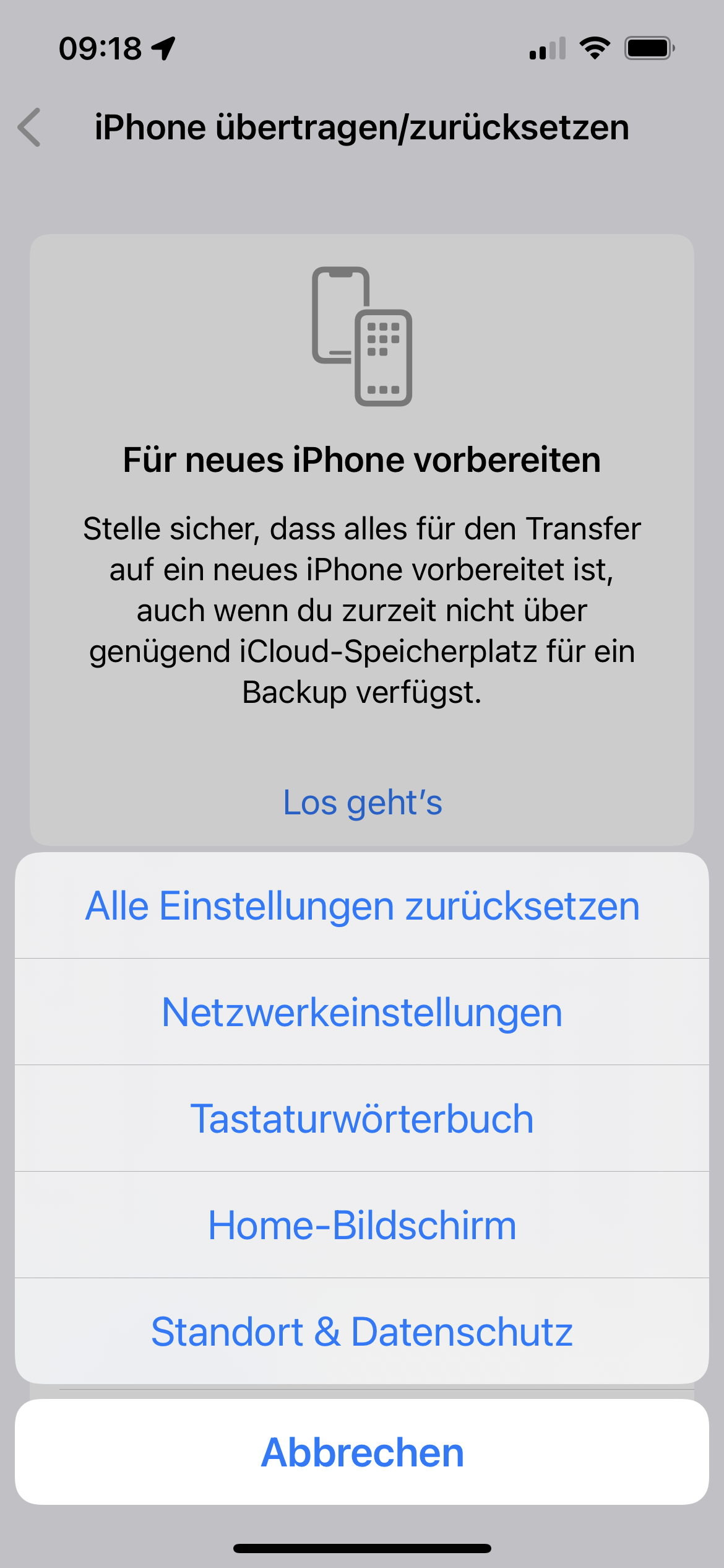 auf zurück setzen drücken , dann erscheinen folgende Optionen