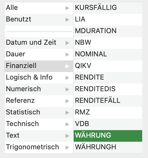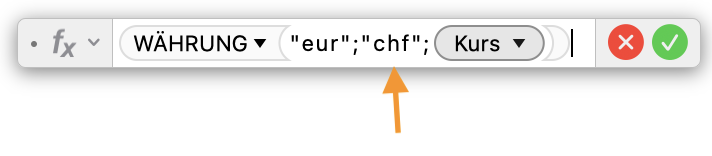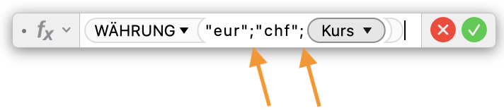 Die Funktion WÄHRUNG liefert Daten über den Wechselkurs zwischen zwei Währungen bei Handelsschluss des vorherigen Handelstages. Diese Daten werden über das Internet abgerufen.