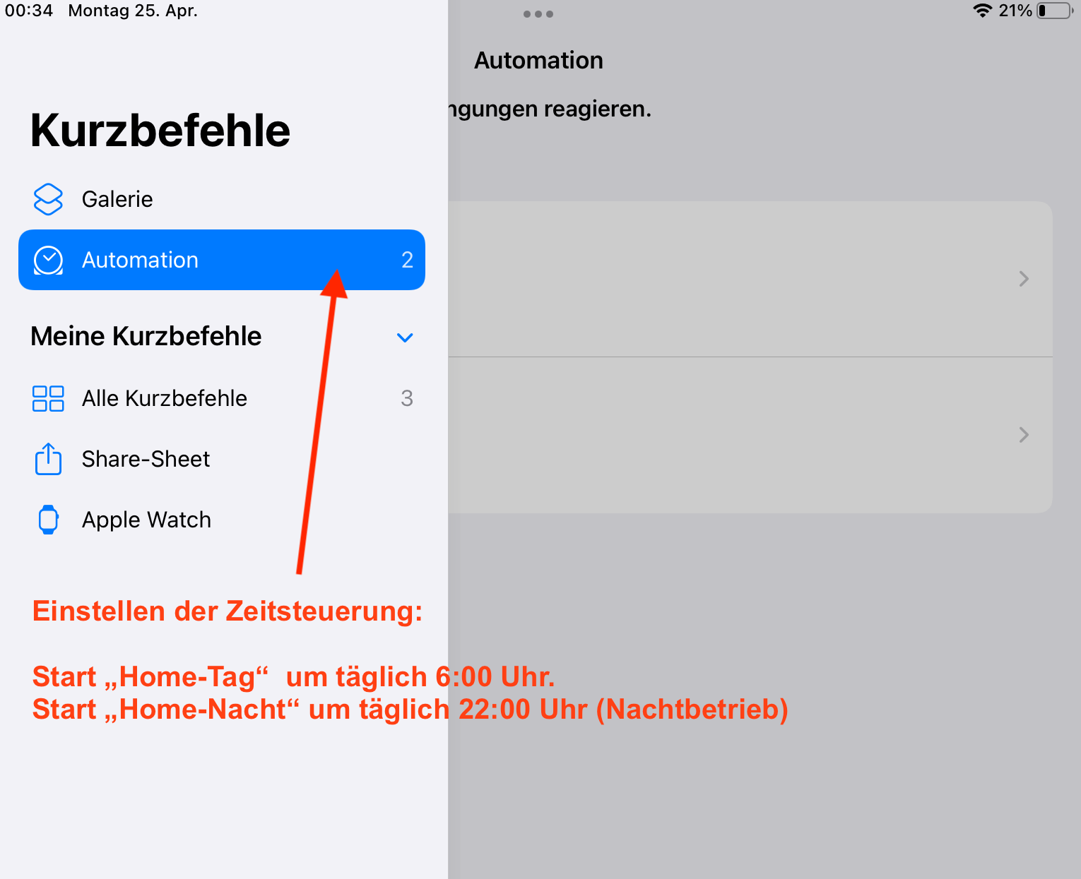 Dafür aber funktionieren aber Kurzbefehle, welche im Hintergrund automatisch ausgeführt werden.