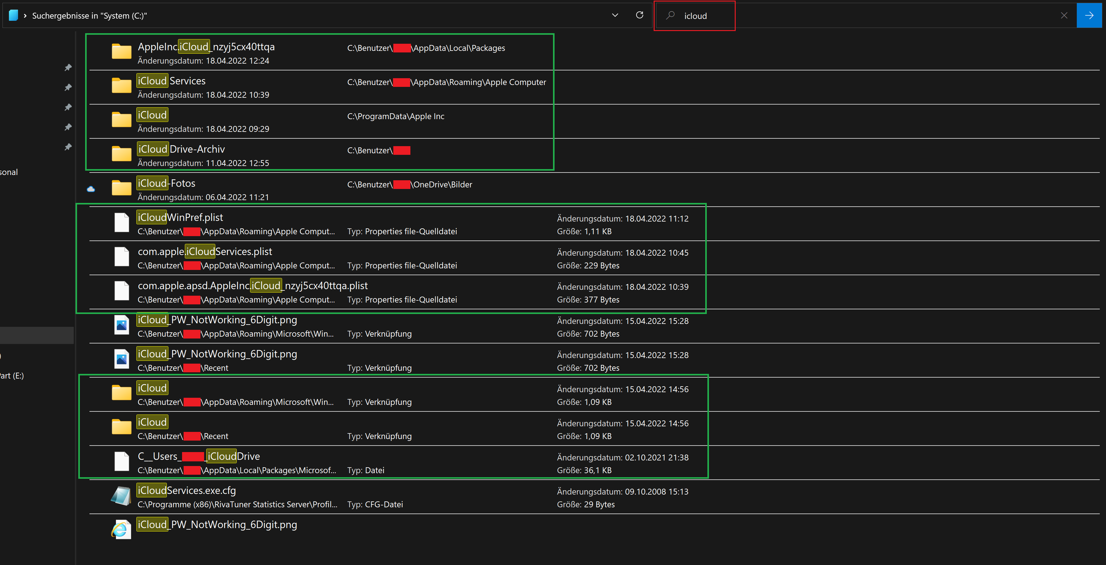Ich habe gemäß der Anleitung iCloud nochmal deinstalliert. Darüber hinaus habe ich mein System danach noch auf Restdateien überprüft.