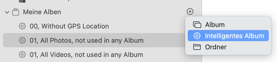 Alle deine Intelligenten Alben werden unter Meine Alben angelegt.
