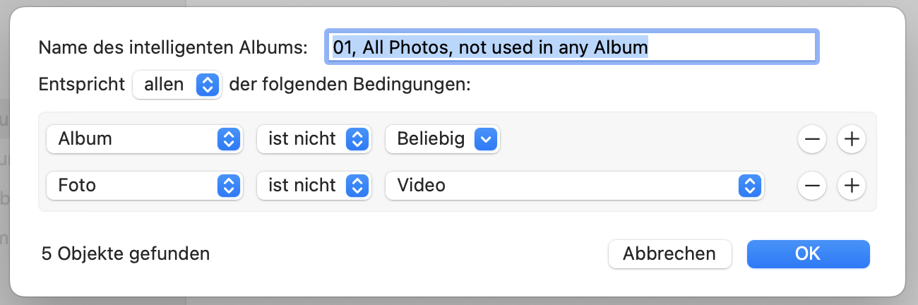Erstellen intelligenter Alben zum automatischen Gruppieren von Fotos in der App „Fotos“ auf dem Mac - Apple Support (DE)
