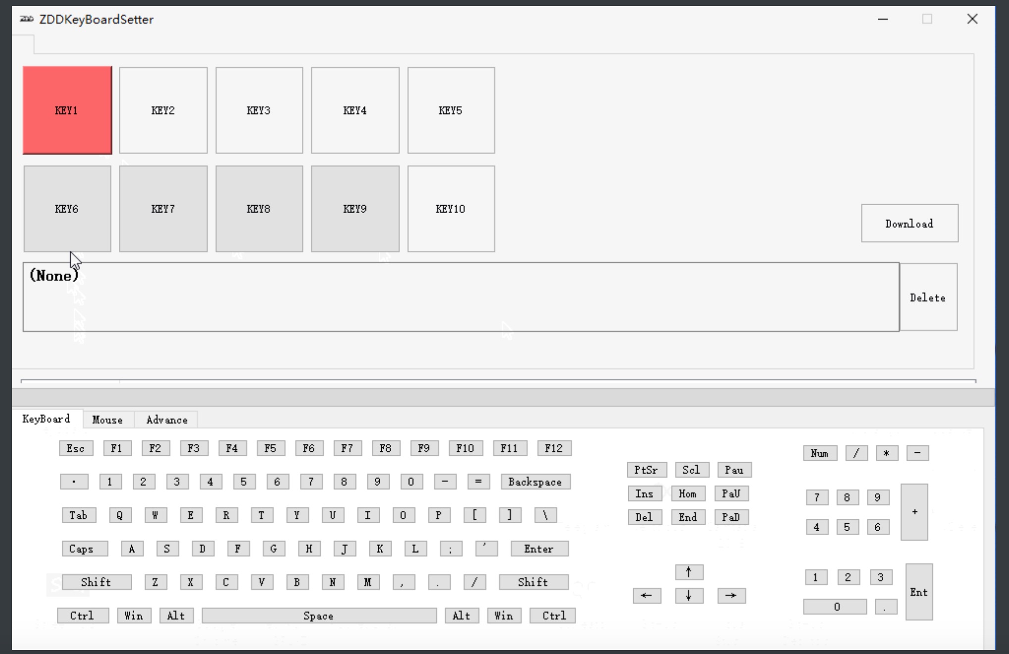 Die ausgewählte Tastatur im Link oben muss zuerst an einem Windows-Rechner programmiert werden, damit von 2 Tasten die eine Taste "CMD + Pfeiltaste oben" ausführt, während die andere Taste "CMD + Pfeiltaste unten" ausgibt. Wie diese Windows-App aussieht, kann man im folgenden Bild sehen und die Programmier-App für Windows hier herunter laden: http://8.210.3.182)9999/man/Readme2.html.
