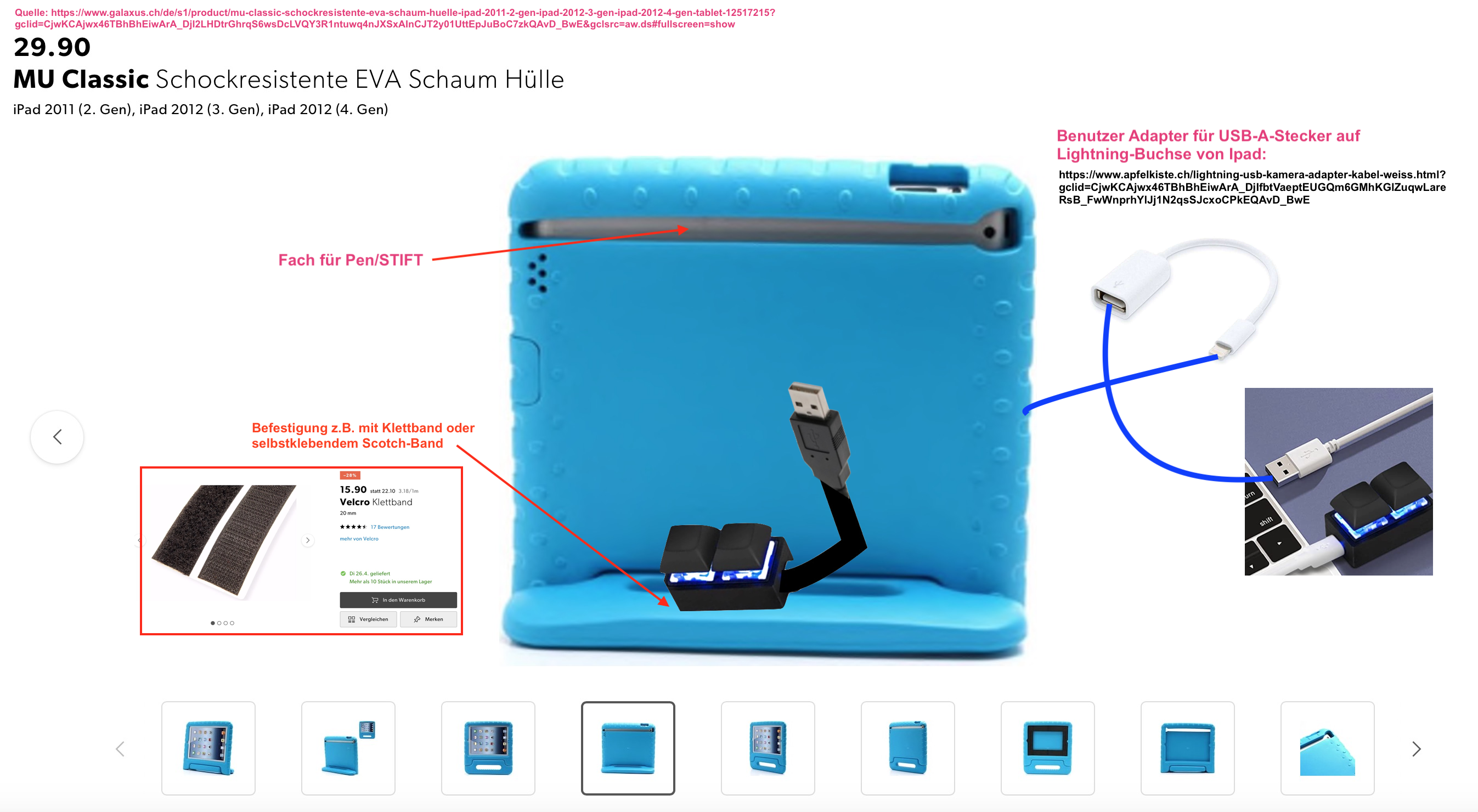 Wobei man für das Ipad bei der Variante "mit Kabel" noch einen Adapter bräuchte, um die Tastatur in die