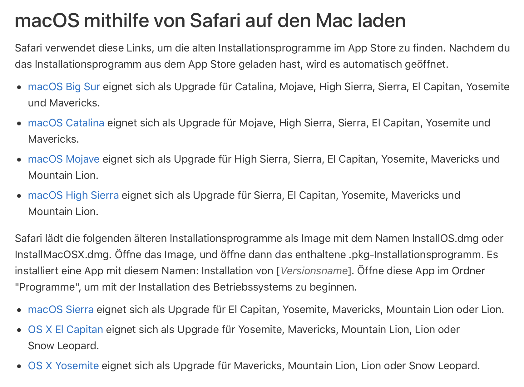 Weiter unten "Alte macOS-Versionen verwenden - Apple Support (DE)" kannst du dir dann die passende OS-Version herunterladen: