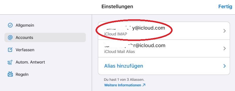 Du kannst uns gerne einmal Screenshots senden, was dir in den iCloud Einstellungen und den Mail Einstellungen angezeigt wird, damit wir uns da ein besseres Bild machen können. Blende persönliche Daten bitte vorher aus!