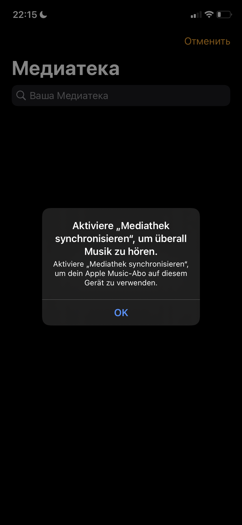 Ich kann meine Bibliothek nicht mit Apple Music synchronisieren. Wenn Sie erneut darauf klicken, erscheint die Meldung „Activate Library Sync“. Außerdem gibt es einen Fehler im Listen-Tab.
