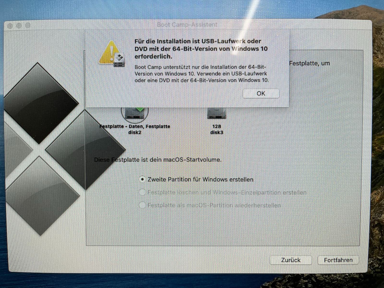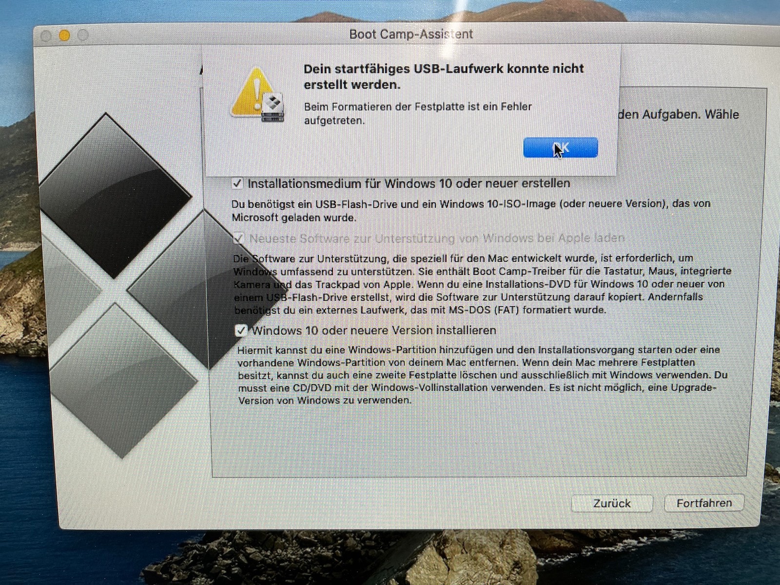 Boot Camp unter macOS Catalina formatiert weder USB-Sticks noch USB-SSDs