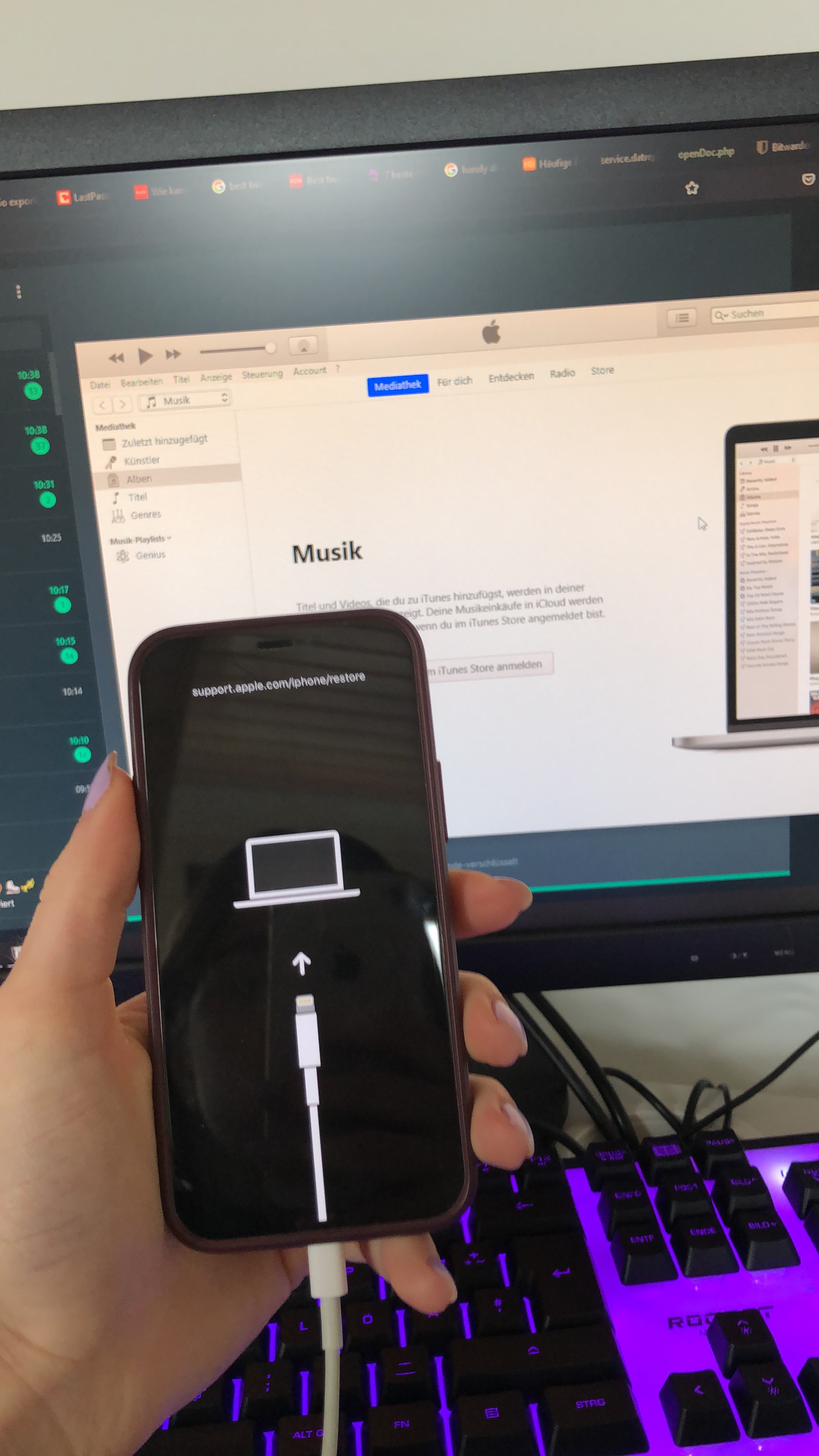 ich bin langsam wirklich echt verzweifelt. Mein iPhone ist einfach tot… Das ist wirklich sehr viel zu erklären weil es eine sehr lange Prozedur bis jetzt war. Das Problem habe ich seit 3 Tagen. Um es kurz und einfach zu erklären hat sich mein iPhone 12 mini 64 GB des Öfteren aufgehängt( das ist seit 4 Wochen ab und zu passiert). Wenn ich zum Beispiel die Safari App geöffnet habe hat sich die App sofort wieder geschlossen nach Öfteren Öffnen der App hat sie sich dann geöffnet. Ich konnte den iPhone Speicher meines iPhones nicht anschauen weil es nicht geladen hat. Das Handy ist sehr warm geworden vorallem auch beim laden… Das Handy war sehr langsam. Wenn ich beispielsweise versucht habe jemanden auf WhatsApp zu schreiben hat sich die Tastatur aufgehängt ich konnte die Nachricht nicht abschicken und das Handy frierte ein. Nach circa 5 Minuten ist es ausgegangen und hat sich neu gestartet. Ich habe mal einen Benchmark laufen lassen. (Screenshot im Anhang). Nachdem ich mit dem Apple Support gesprochen habe meinte sie ich soll das Handy auf Werkseinstellungen zurücksetzen. Dies habe ich dann getan. Während dessen ich es zurückgesetzt habe ist das Handy wieder abgestürzt und es blieb leider beim Apple logo hängen. iTunes zeigte Fehler (Anhang). Naja, Das Handy hat auf keine Tastenkombination reagiert. Nachdem es sich über die Nacht entladen hat habe ich es heute Morgen noch einmal versucht und nun lässt sich das iPhone immer noch nicht wiederherstellen.