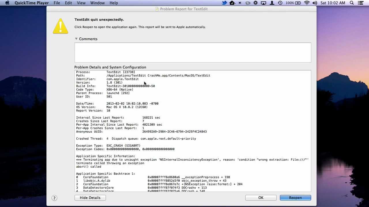 Hi, nach dem versenden einer Email mit Fotodateien an eine Bekannte stuerzt bei ihr nun staendig das Programm ab und sie erhaelt eine Meldung mit der Aufforderung, eine App mit dem Namen CrashReport.app zu laden. Im Netz findet man dazu nicht viel - kennt jemand diese App oder Meldung und ist dies ein Hinweis auf eine Malware? Wie finde ich heraus, ob meine Mail /Computer infiziert ist? Habe noch keine derartige Meldung von anderen Kontakten erhalten.