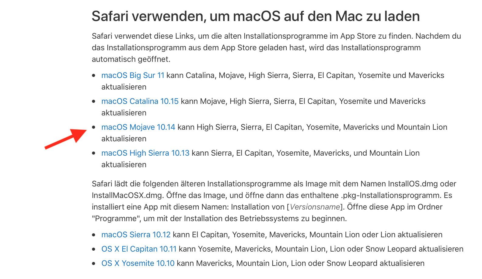 und Mojave installieren kannst.