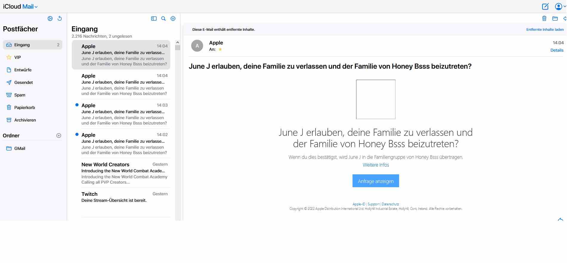 wenn wir sie einladen bekomme ich zwar eine email. werde dann aber auf diese seite weitergeleitet und es geht nicht weiter. Bild finden sie im anhang https://www.icloud.com/family_sharing/