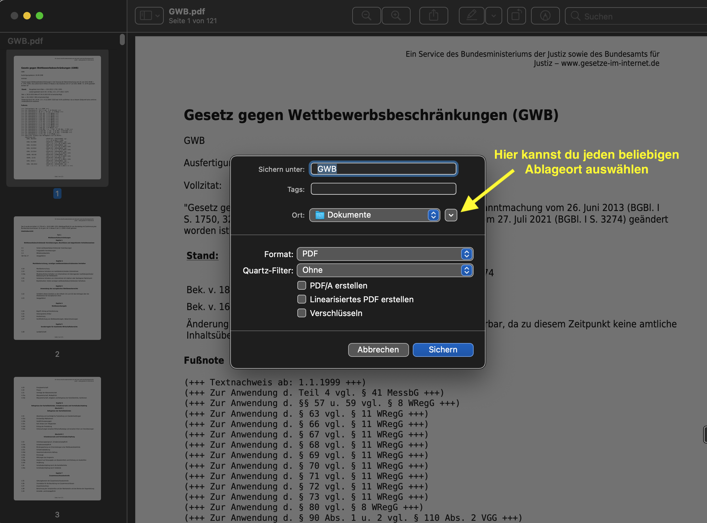 Ich habe folgendes Problem. Wenn ich in Safari eine PDF öffne, und am Bildschirmunterrand den Downloadbutton betätige, wird die Datei standardmäßig im Downloads Ordner gespeichert. Ich habe aber eingestellt, dass Ich vor jedem Speichern nach dem Speicher Ort gefragt werden will.