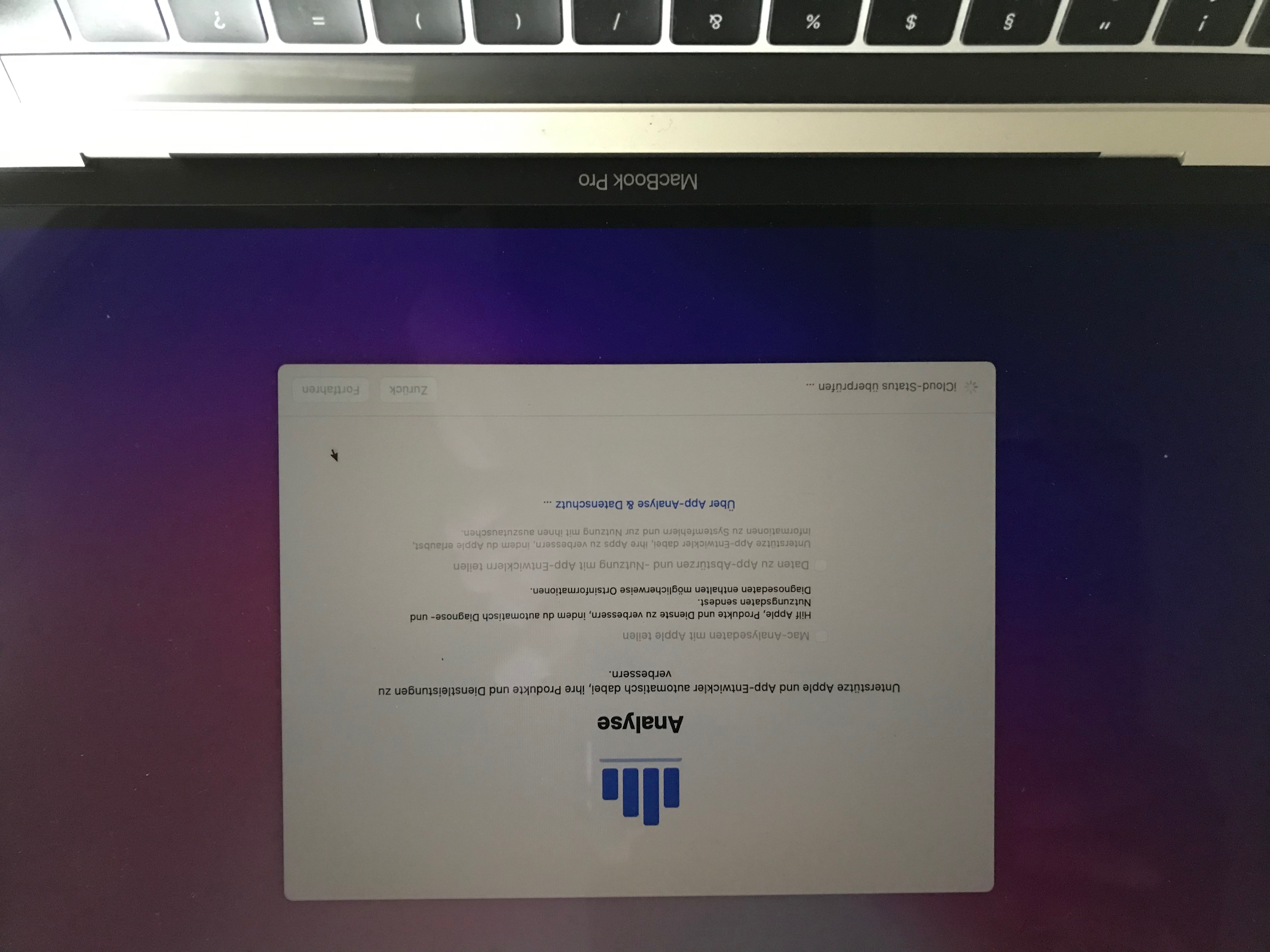 ich sitze hier vor einem MacBook Pro A1989, das sich beim Starten aufgehängt hat und jetzt auf keinerlei Benutzerinteraktion mehr reagiert. Nach der Eingabe des Passwortes sieht man den auf dem Foto gezeigten Splash. Alle Versuche, das Gerät herunterzufahren oder auch abzuschießen (mit den allseits bekannten Tastenkombinationen waren erfolglos. Ich versuche jetzt mal den Akku leerzufahren.