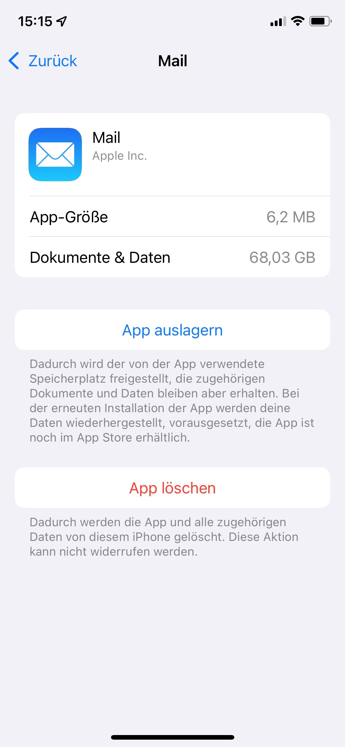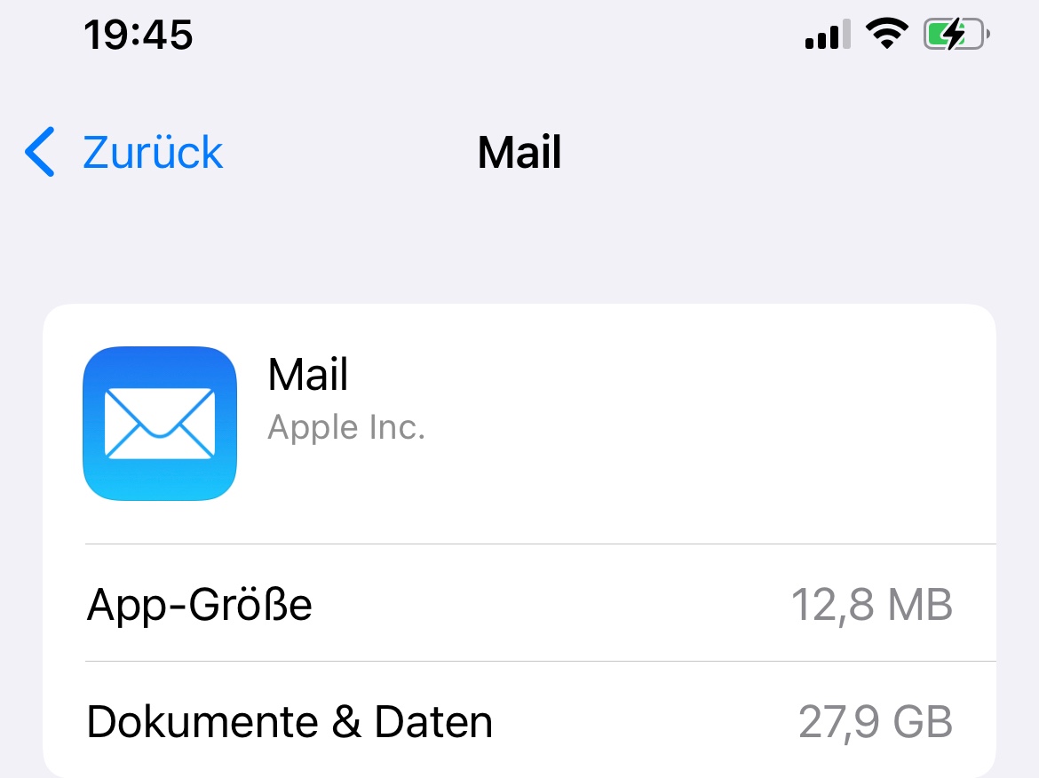 Hallo habe mal meine anderen Apple Produkte kontrolliert nach dem Speicher stand. Alle haben so einen großen Mail Speicher Verbrauch.