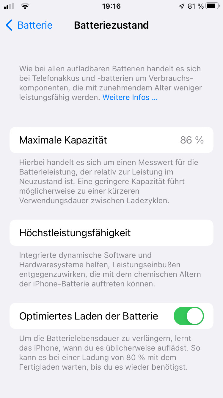 Seit ios 15.4.1 lädt mein iPhone SE 2020 nicht mehr, wenn ich das Ladekabel in die Steckdose stecke. Es entlädt sich komplett. Erst nach dem Runterfahren wegen Strommangels und erneutem Einstecken in eine Steckdose lädt es wieder auf.
