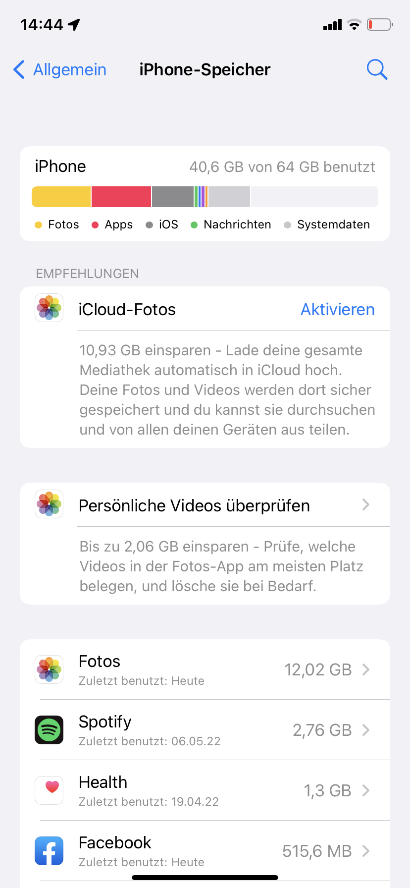 Ich habe seit einigen Tagen das gleiche Problem. iPhone XR, 64 GB, iOS 15.4.1