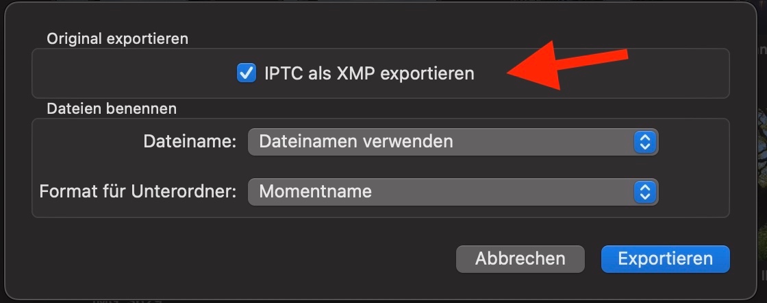 Also werden sämtliche Fotos aus meiner Fotomediathek mittels "Exportieren"->"unbearbeitetes Original exportieren" in einen zentralen Ordner gespeichert. Warum unbearbeitetes Original? Weil sonst das speichersparende HEIC-Format in jpg umgewandelt wird, was ich nicht möchte.