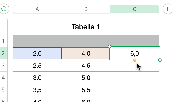 Ich habe in der Tabelle eine Formel eingegeben. Nun möchte ich diese nach unten ziehen, um sie auf die ganze Spalte anzuwenden. Genau das geht aber nicht, da mir der gelbe Punkt nur oben in der Mitte der Zelle angezeigt wird. Auch das keine Kreuz rechts unten in der Ecke erscheint bei mir nicht, wenn ich die Maus auf die Ecke setze. Da erscheint lediglich der Doppelpfeil. Kann mir jemand sagen wie ich das Problem löse?