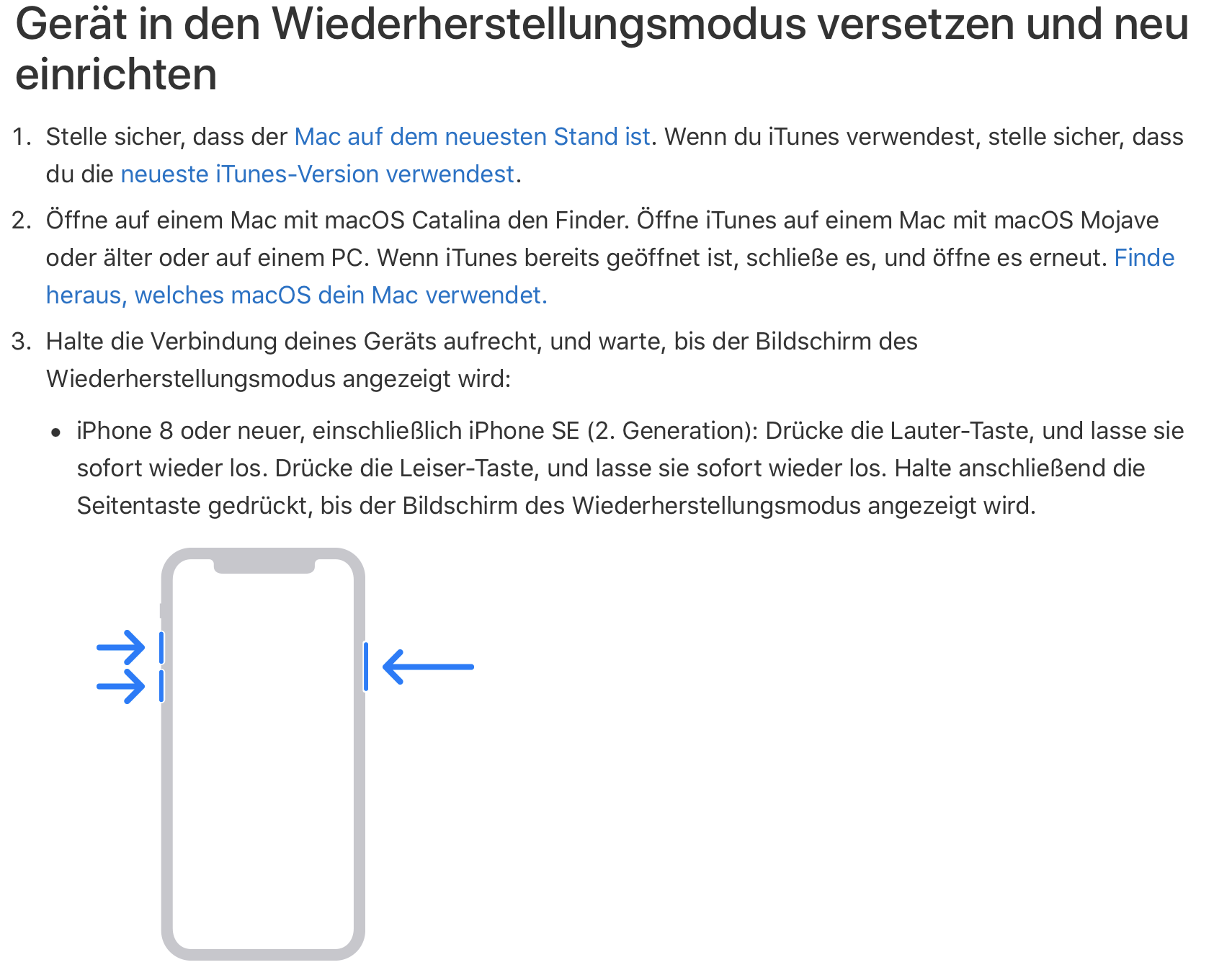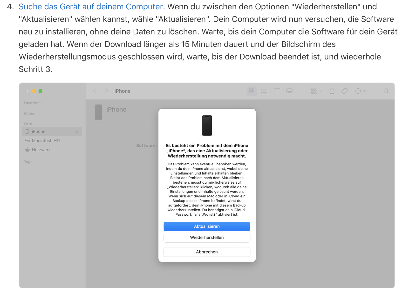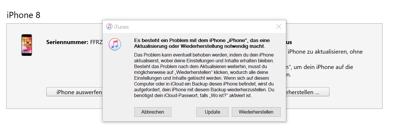 Beim Klick auf "Wiederherstellung" wird das iPhone gelöscht !