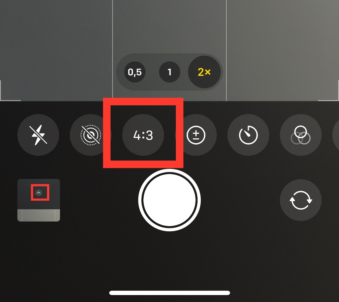 öffne die Kamera App des iPhones und klicke oben auf das Symbol zum aufklappen der Einstellungen: