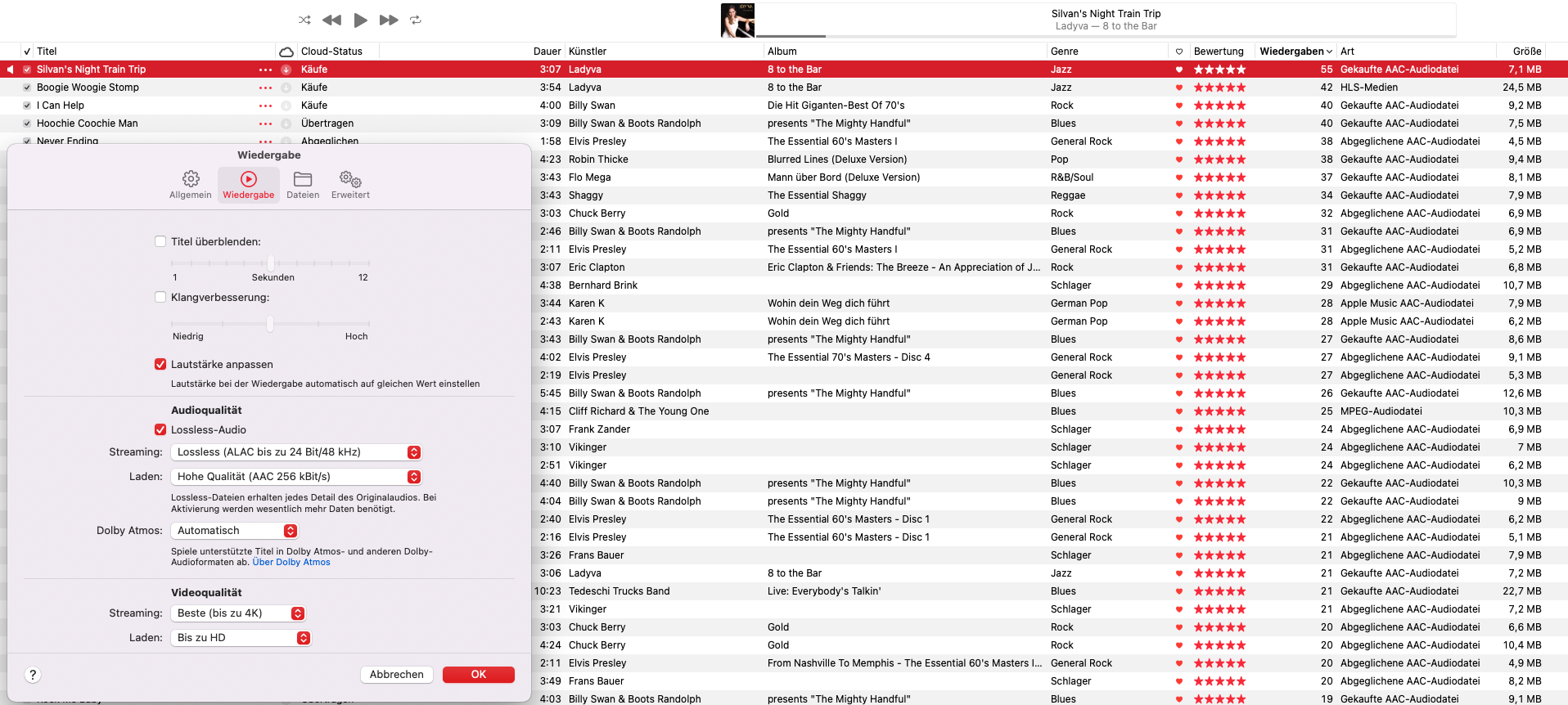 Beim Streaming: Lossless (ALAC bis zu 24 Bit/48 kHz) Werden alle Titel und Playlists abgespielt, aber wenn ich auf den Download Button klicke und die Titel geladen werden geht kein HLS Medium???