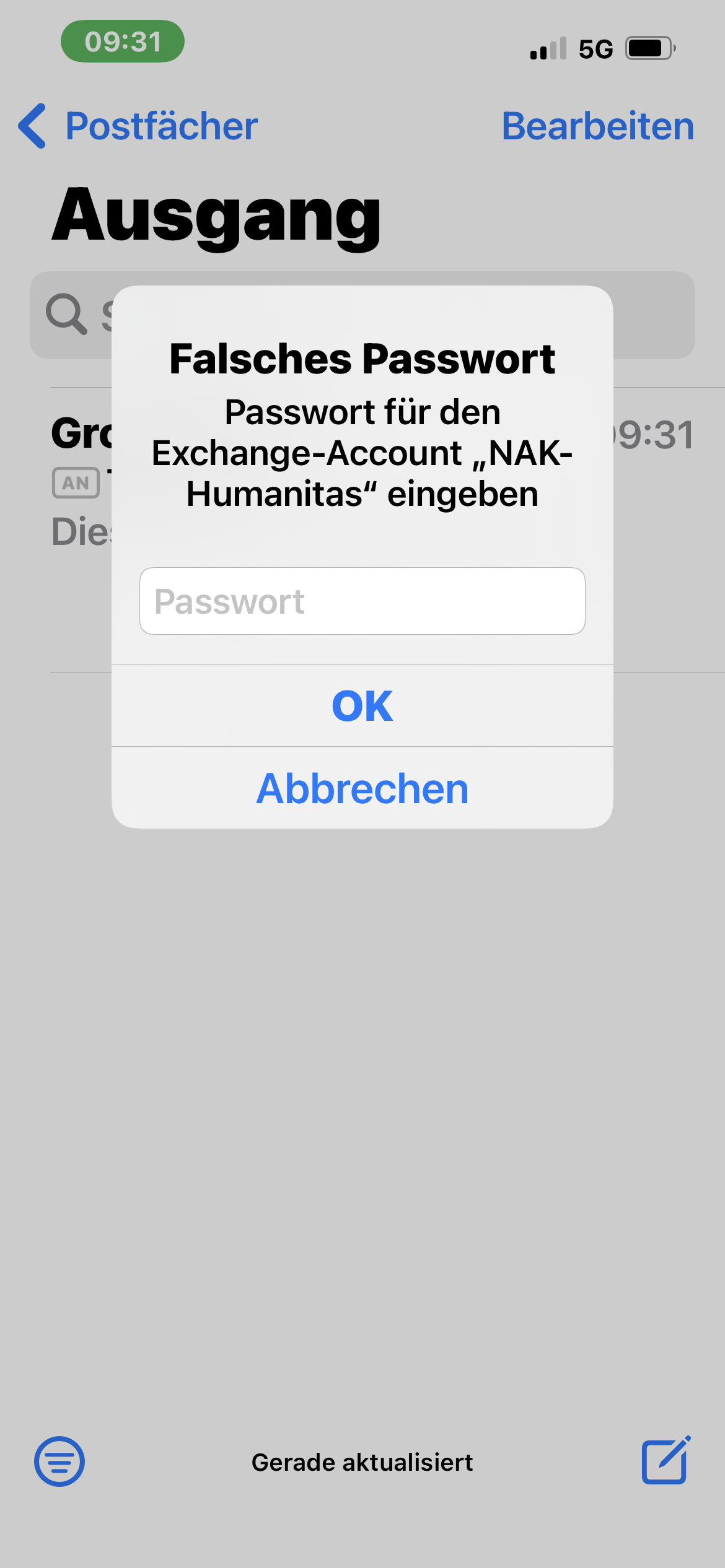 Ich habe versucht, via Exchange, einen weiteren Account einzurichten und zwar ***@nak-humanitas.ch. Das geht, bis "Sichern" kommt. Danach erfolgt die Meldung, das Passwort sei falsch. Ich kann trotzdem sichern und wenn ich dann aber eine Mail senden will, kommt wieder die Fehlermeldung. Siehe dazu die Screenshots. Ich habe ein Passwort und habe keine Ahnung, weshalb es nicht geht und habe auch verschiedene Varianten ausprobiert. Ohne Erfolg.