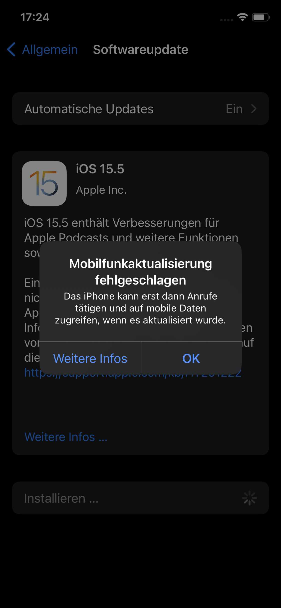 iPhone XS lässt sich nicht auf iOS 15.5 aktualisieren