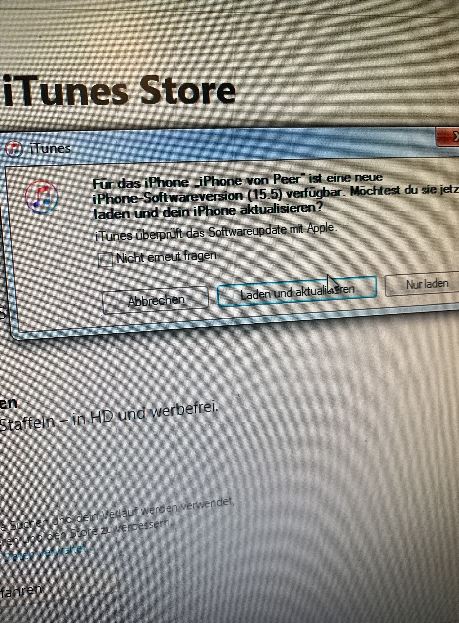 Ich habe versucht mein Iphone über iTunes zu aktualisieren - ebenfalls ohne Erfolg.
