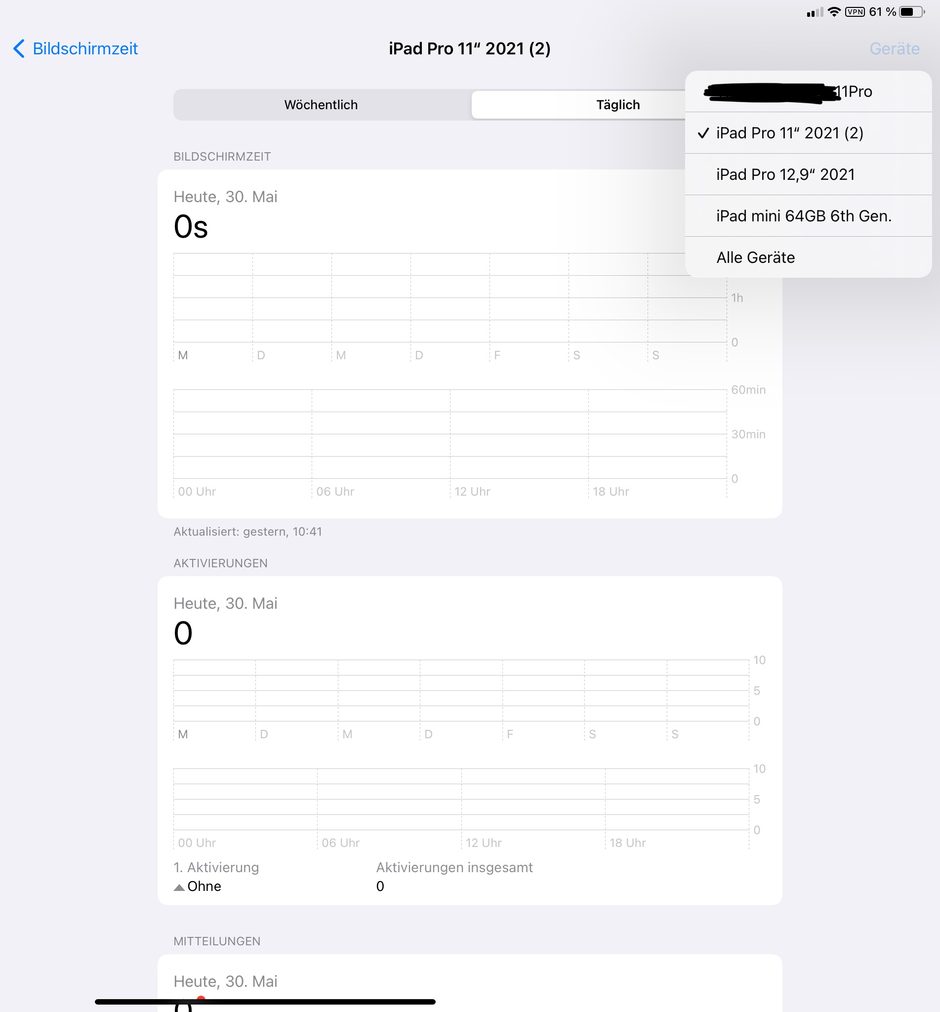 Und gleich das nächste Problem aufgetan… habe vor kurzem den Wechsel von einem privaten iPad 11“ auf ein dienstliches 12.9“ vollzogen und damit ersteres unnötig werden lassen. Hab es zurückgesetzt und nun ist alles schön… aber es taucht in den Bildschirmzeiten noch auf. Die hatte ich natürlich nicht extra ausgeschaltet, bin davon ausgegangen, dass ein korrektes Deaktiveren / Löschen / Werkseinstellungen auch bei den Bildschirmzeiten das Gerät entfernt wird.