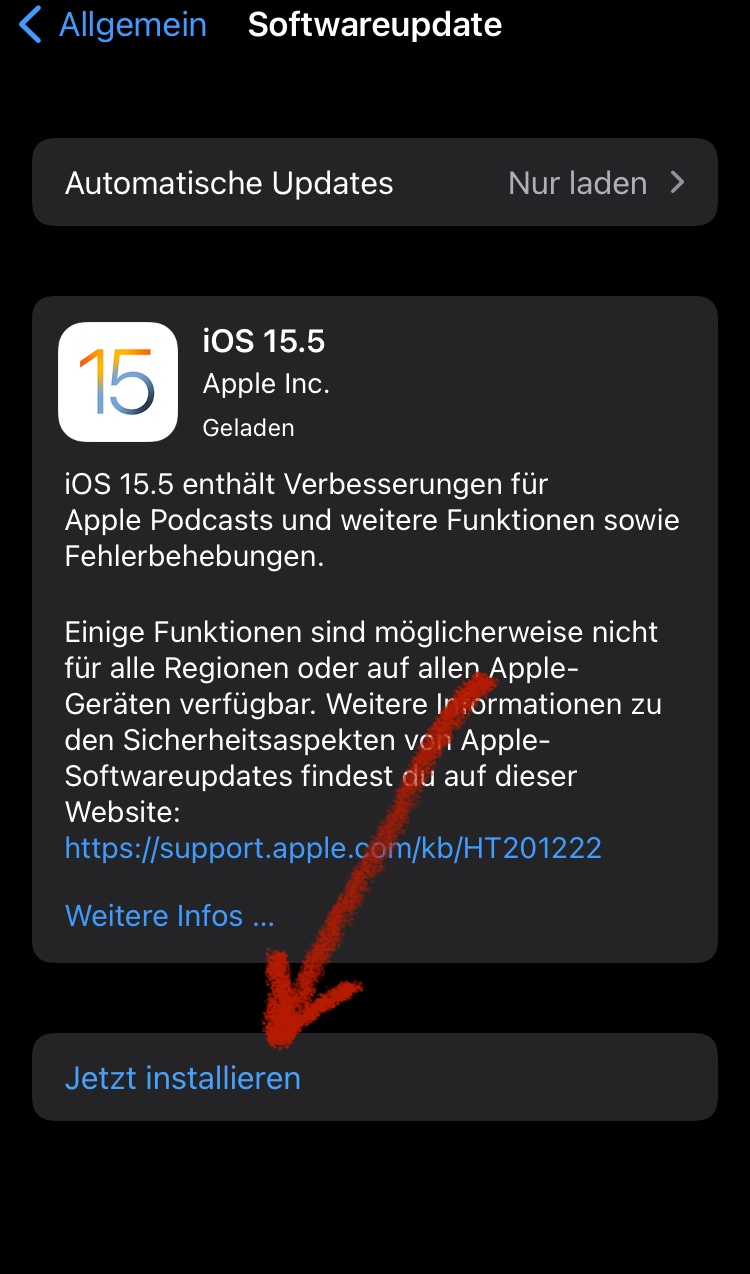 hast du mal geschaut, was bei dir unter „Softwareupdate“ in den Einstellungen angezeigt wird?