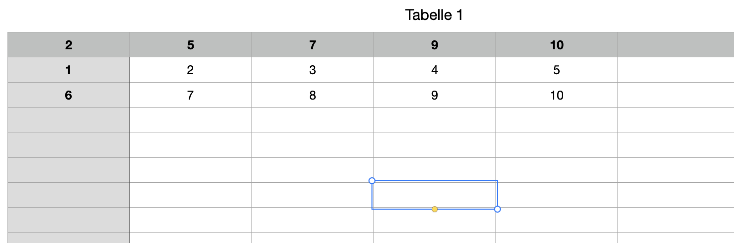 Numbers Zahlen automatisch markieren bei der Eingabe.