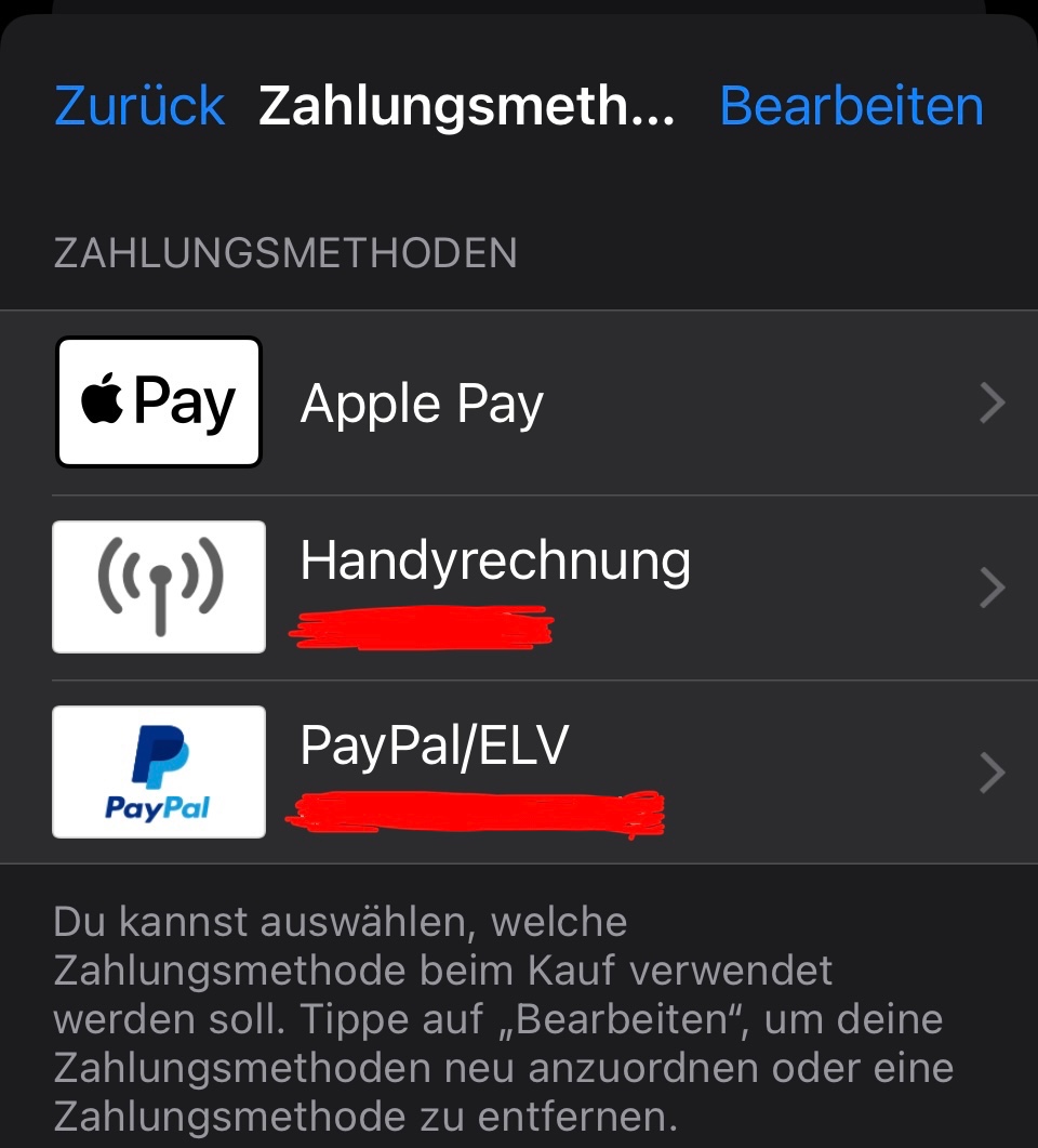 trotz mehrfacher hinterlegter Zahlungsmethoden (ApplePay, PayPal und Telefonabrechnung) kann ich beim Kauf von und in Apps die Zahlungsmethode nicht mehr auswählen.