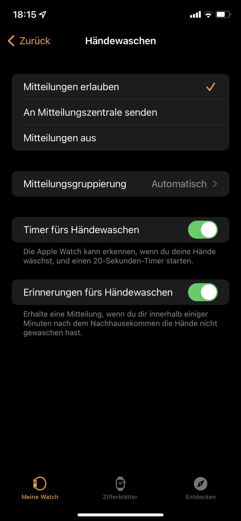 Die Händewaschen-Funktion auf meiner Apple Watch Series 5 funktioniert nicht, obwohl ich sie in den Einstellungen aktiviert habe. Was soll ich da tun 🤷♂️
