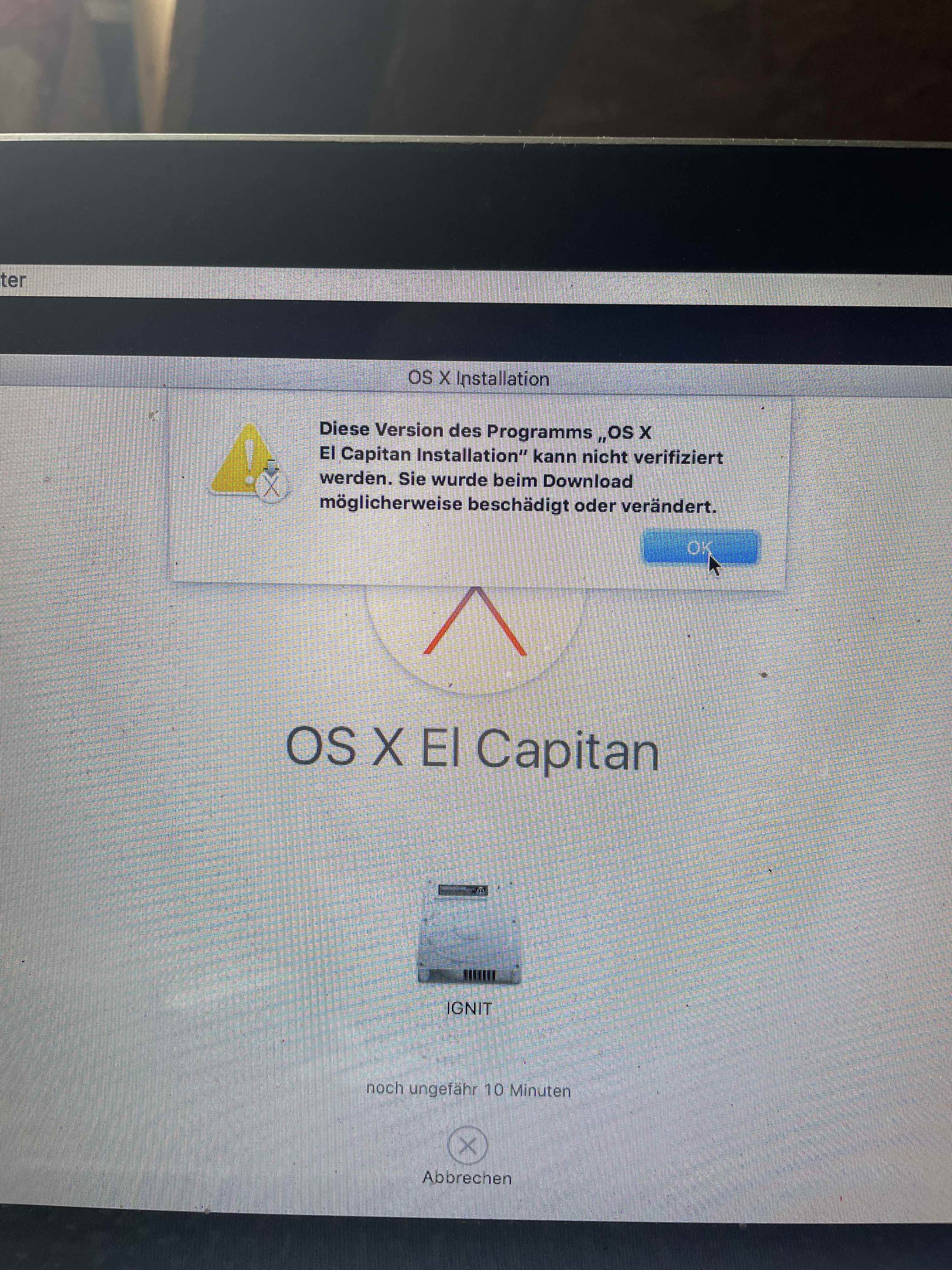 Wenn du unbedingt MacOS El Capitan installieren möchtest, starte das MacBook Pro mit gedrückten Tasten "cmd R" usw.