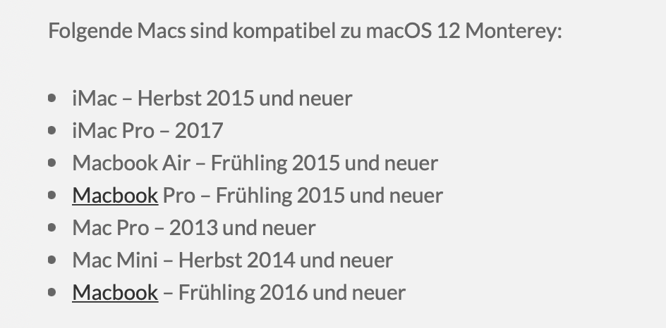 Warum kann ich Mac OS Monterey nicht auf meinem iMac 21 Zoll Mitte 2011 nicht installieren ? habe ein Backup auf Time Maschine gemacht !
